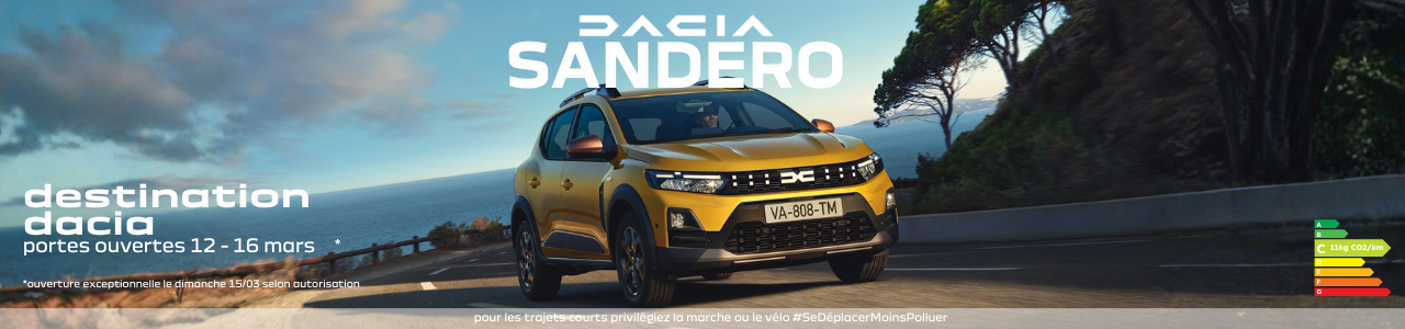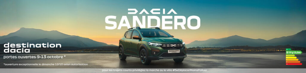 Venez découvrir Dacia SANDERO et nos offres sur la gamme Dacia lors de nos journées Destination Dacia du 9 au 13 octobre 2025.