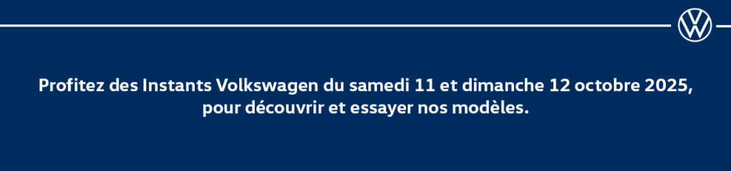 Prenez rendez-vous pour essayer nos modèles Volkswagen le samedi 11 et le dimanche 12 octobre 2025dans votre concession la plus proche.