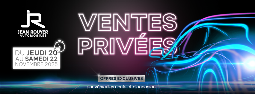 Du 20 au 22 novembre, profitez des VENTES PRIVÉES dans vos concessions Jean Rouyer Automobiles.